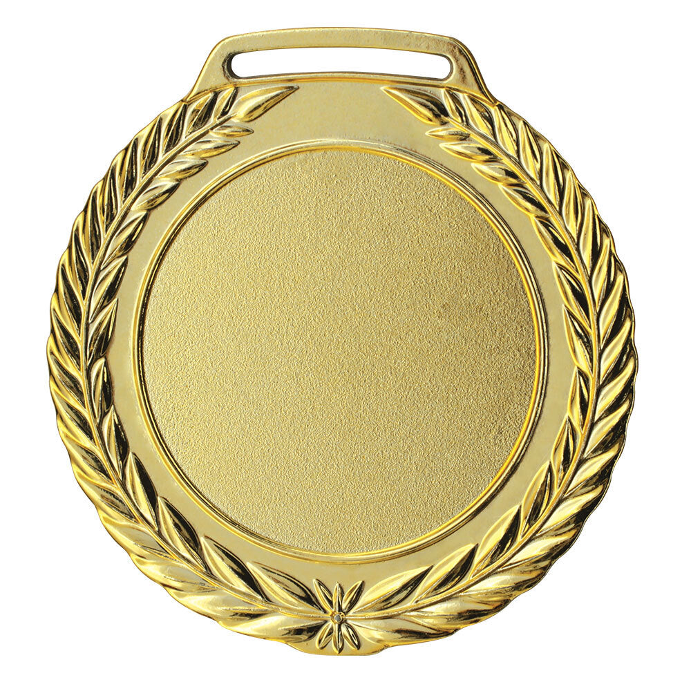 dourada. Suporte para fita com 2,5 cm de largura. A medalha pode vir