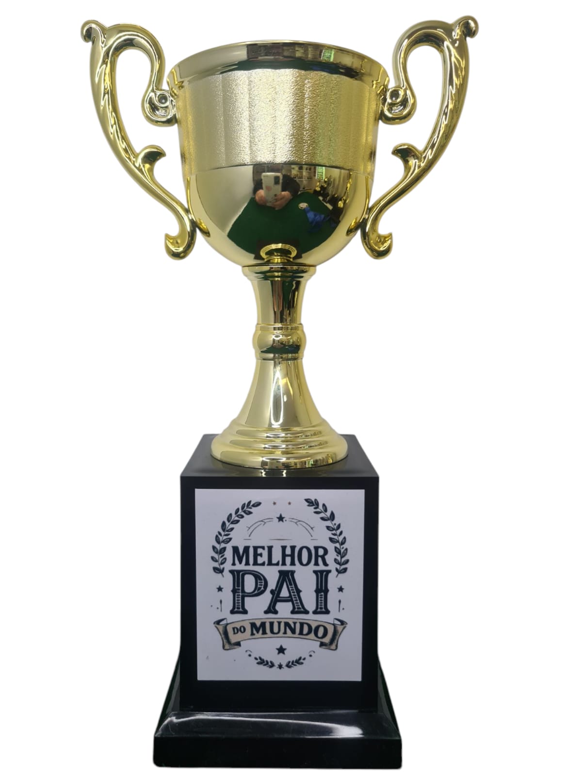 501205-do troféu em polímero metalizado a alto vácuo    Medidas: Altura – 23 cm.  Largura superior –...