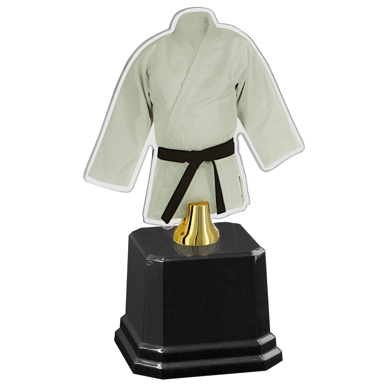 Troféu em polímero com placa de acrílico medidas: altura – 24 cm. Largura superior – 10,80 cm. Largura inferior – 8,50 cm. Altura da base- 6,20 cm. Peso 0,3 aproximado – cores – dourado, preto, ilustração colorida